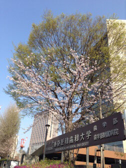 上野公園の桜すごい人出つづいては左の写真。靖國神社にあります東京管区気象台指定標本木。東京の開花宣言はこの桜によって出されます。私の桜の標本木は右の写真のこれ。毎朝の通勤で必ず通る東京医科歯科大学正門の桜、毎年これが咲くと個人的に“春の到来”を感じます。